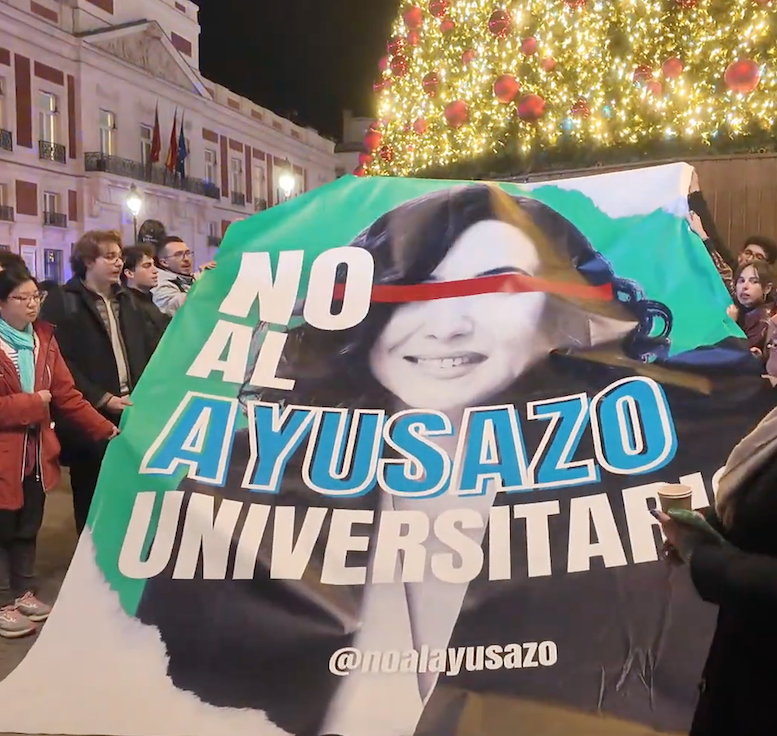 Estudiantes, profesores y trabajadores se han manifestado en Madrid en la segunda jornada de huelga para exigir al Gobierno autonómico, presidido por Isabel Díaz Ayuso, una mejora de la financiación de las universidades públicas madrileñas. La marcha está encabezada por una pancarta con el lema «Universidad pública» sobre una reproducción del cuadro El 3 de mayo de 1808 en Madrid, de Francisco de Goya.