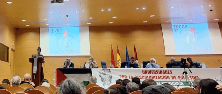 Presentación del Tribunal de los Pueblos sobre la Complicidad con el Genocidio Palestino en el Estado Español (TPCGP-25) en nombre de la Red Universitaria por Palestina (RUxP), celebrado en la Facultad de Políticas y Sociología (UCM), los días 28 y 20 de noviembre